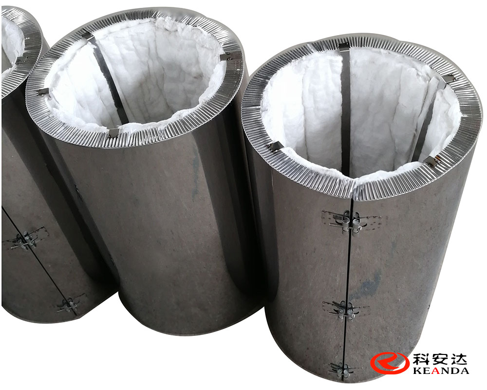 3、 順序逐個安裝保溫套,安裝時,從保溫套的開口位置包裹到設(shè)備上面,若保溫套上有開孔,則要保證開孔位置的對齊。